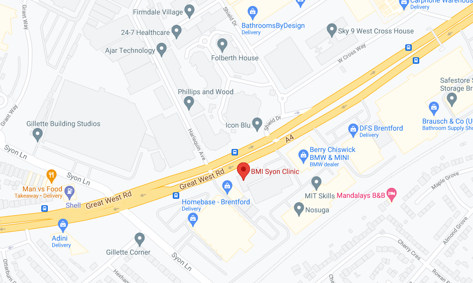 Tuesday 4-6 PM BMI Syon Clinic, 941 Great West Road, Brentford Middlesex TW8 9DU